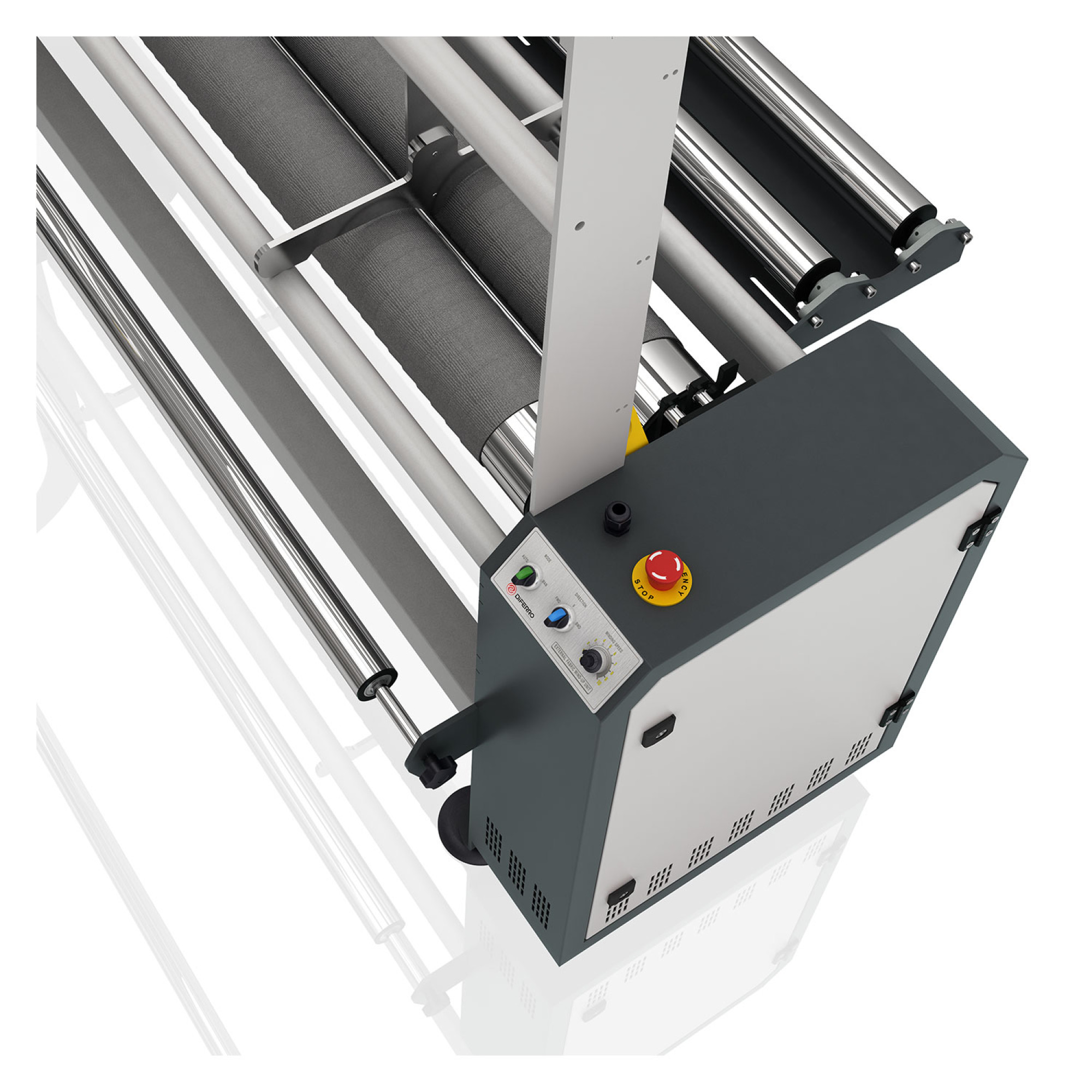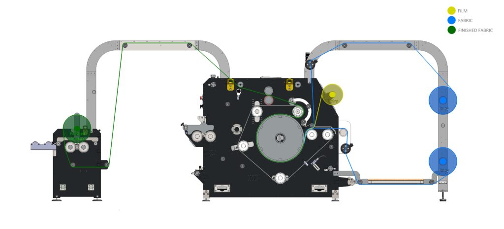 It is for the winding of the output fabric roll not on the machine but on the unit, so that the printed fabric can be better cooled off, thus providing more space to work easily.